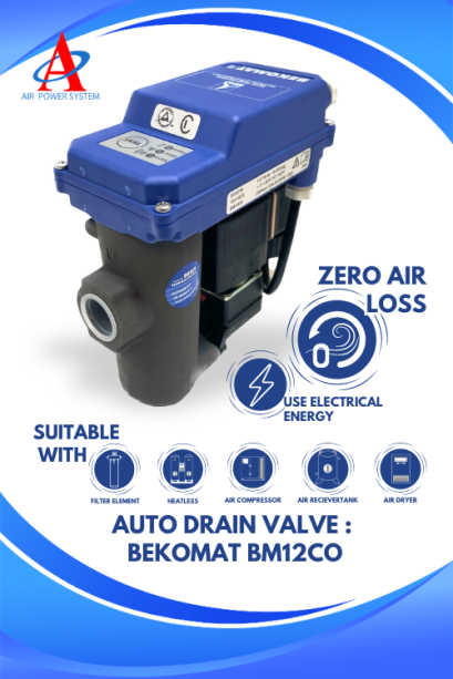 ท่อทางเข้า Condensate ขนาด 3/4 (outside) ,1/2 (inside) ระบายน้ำอัตโนมัติ ด้วยเซ็นเซอร์แบบคาปาซิทีฟ (เก็บประจุในท่อเซ็นเซอร์ )ในตัว ควบคุมปริมาตรของเหลวอย่างแม่นยำ ควบคุมโซลินอยด์ด้วย Pilot Control (ควบคุมแบบนำร่อง) ระบายน้ำ เมื่อน้ำถึงปริมาตรที่กำหนดเท่านั้น และจะปิดทันทีเมื่อระบายน้ำออก ไม่สูญเสียลมในช่วงเวลาที่น้ำรอการระบาย มีระบบการตรวจสอบ บ่งชี้อายุการใช้งานของ Filter เส้นผ่านศูนย์กลางวาล์วขนาดใหญ่ป้องกันการเกิด Emulsions (คอนเดนเสทละลายเข้ากันเป็นเนื้อเดียวไม่ได้สองชนิดขึ้นไป ทำให้เกิดการแตกตัว) สำหรับการทำงานที่อุณหภูมิสูงถึง +60 °C ทำความสะอาดตัวเองโดยอัตโนมัติ ตามปริมาณสิ่งสกปรก