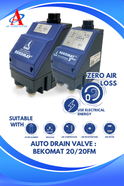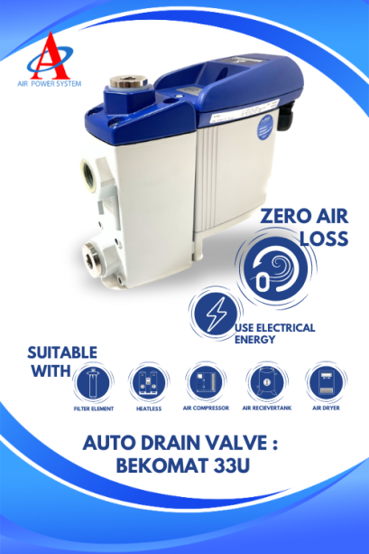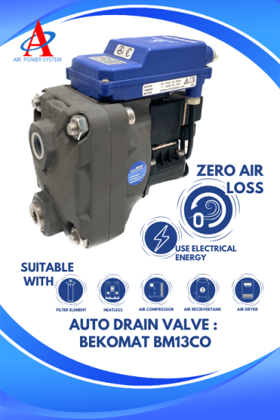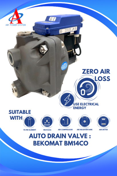 ท่อทางเข้า Condensate ขนาด 3/4 ระบายน้ำอัตโนมัติ ด้วยเซ็นเซอร์แบบคาปาซิทีฟในตัวในตัว ควบคุมปริมาตรของเหลวอย่างแม่นยำ ควบคุมโซลินอยด์ด้วย Pilot Control (ควบคุมแบบนำร่อง) ระบายน้ำ เมื่อน้ำถึงปริมาตรที่กำหนดเท่านั้น และจะปิดทันทีเมื่อระบายน้ำออก ไม่สูญเสียลมในช่วงเวลาที่น้ำรอการระบาย (Zero air loss) มีการแจ้งเตือนเมื่อเกิดปัญหาในกระบวนการระบายคอนเดนเสท (ถึงเวลาเปลี่ยนอะไหล่,บำรุงรักษาหรือปัญหาอื่นๆ) มีท่อทางเข้าสามทาง เลือกติดตั้งได้ตามรูปแบบตามความต้องการ