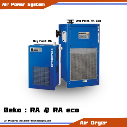 การอบลมแห้งด้วยความเย็นเป็นเทคโนโลยีที่คุ้มค่าที่สุด สำหรับการลดคงวามชื้นในอากาศอัด: อากาศอัดจะถูกทำให้เย็นลงเพื่อให้ไอน้ำควบแน่นภายในตัวเครื่องและระบายออก สำหรับปริมาณการใช้งานที่ผันผวน ไม่คงที่ เราขอแนะนำ DRYPOINT ® RA eco เนื่องจากการควบคุมอัจฉริยะช่วยให้คุณ ประหยัดพลังงานได้ ปรับความเร็วการทำงานตามปริมาณการใช้งานลมที่ผันผวน สำหรับการใช้งานที่สภาวะคงที่ เครื่องทำลมแห้งแบบความเร็วคงที่ DRYPOINT ® RA เป็นโซลูชันที่มีประสิทธิภาพมากที่สุด